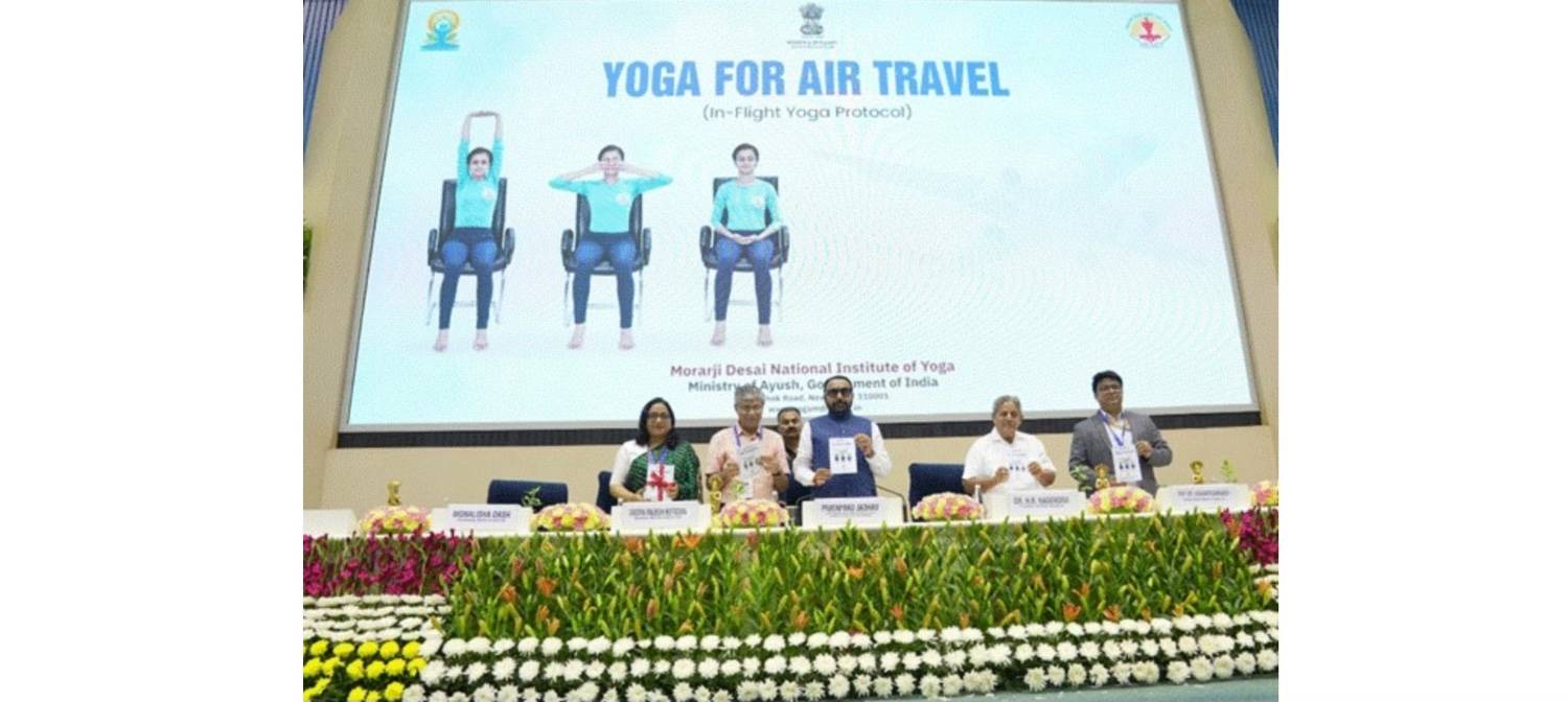 In a move that blends preventive healthcare with the realities of modern travel, the Ministry of Ayush on Friday introduced a five-minute “Yoga for Air Travel” routine aimed at helping passengers reduce stiffness, fatigue and stress during flights. The protocol was launched during Yoga Mahotsav 2026 by Union Minister of State (Independent Charge) for Ayush, Shri Prataprao Jadhav, and has been developed by the Morarji Desai National Institute of Yoga.
